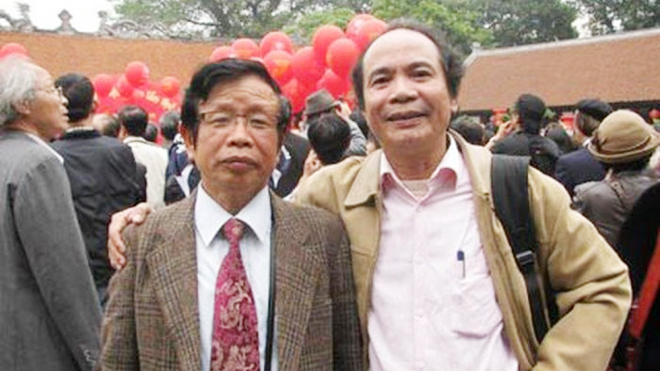 | Nhà thơ Nguyễn Phan Hách và nhà thơ Nguyễn Trọng Tạo tại ngày thơ Việt Nam năm 2017. giờ cả hai anh đã cùng về cõi thiên thu. |