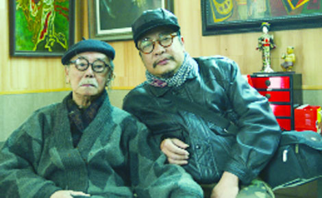 | Họa sỹ Mai Long (bên trái) và họa sĩ Tô Chiêm - tác giả bài viết. |