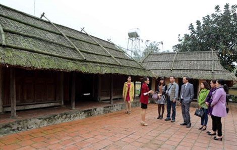 Du khách trước ngôi nhà tranh của cố Tổng bí thư Hà Huy Tập.