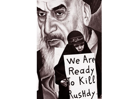 | Giáo chủ Iran Ayatollah Ruhollah Khomeini quyết hạ sát nhà văn Salman Rushdie. |