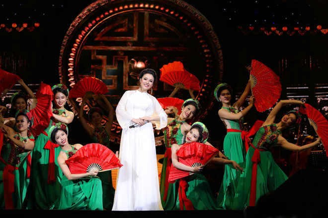 | Ca sĩ Tân nhàn trong liveshow "Trở về". |