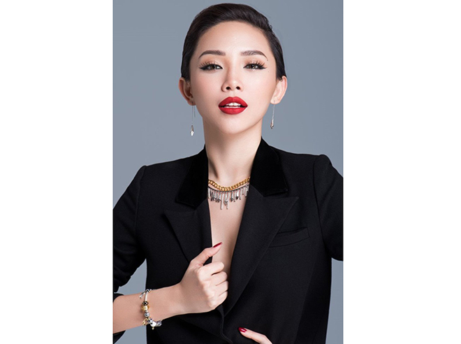 | Ca sĩ Tóc Tiên với phong cách gợi cảm. |