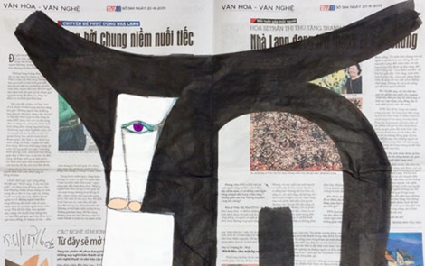 Họa sĩ Hoàng Phượng Vĩ Chất liệu bột màu trên báo cũ không mới, ở phương Tây đã làm từ rất lâu rồi. Ở ta, trong thời chiến, điều kiện sống rất khó khăn, họa sĩ Bùi Xuân Phái đã sử dụng những tờ báo Văn nghệ được biếu để vẽ, tạo hiệu quả thị giác cùng vẻ đẹp khác lạ so với những tác phẩm vẽ trên giấy thường. Có sự kết hợp của chữ in (tính đồ họa) và những hình vẽ (bằng tay, handmade), sự giao thoa được thể hiện trong bức tranh. Thế hệ của chúng tôi ngày nay có nhiều vật liệu cao cấp nhưng vẽ trên chất liệu báo cũ rất thích thú vì được trở về và sống lại với tuổi thơ của mình, khi nhìn thế hệ cha anh sáng tác ngày xưa trên giấy báo. Nó tạo cảm hứng rất lớn cho các họa sĩ sáng tác. Vẽ trên giấy báo khác trên giấy thường. Họa sĩ chừa lại chi tiết hoặc phủ màu trong suốt, hoặc bôi màu nhiều sắc độ đậm nhạt, hoặc để nguyên những khoảng trống, để lại phần chữ in. Đây là cuộc triển lãm hết sức công phu, kĩ lưỡng. Ban tổ chức đã tâm huyết lựa chọn được nhiều họa sĩ tên tuổi sáng giá của hội họa Việt Nam đương đại. Đây cũng là sự tri ân của người làm báo đối với họa sĩ và đem lại niềm hạnh phúc rất lớn cho những người cầm cọ. Họa sĩ Đặng Xuân Hòa Ý tưởng đặt hàng họa sĩ vẽ trên giấy báo là sáng kiến hay, bởi nhiều khi, mới - cũ hoà trộn với nhau thì phong phú hơn. Nghệ sĩ thì hay hoài cổ, thường quay đi quay lại từ chất liệu tới đề tài. Nhờ thế mà sống lại được kí ức. Những bậc thầy hội họa cùng cả thế hệ chúng tôi từng sống trong nghèo khổ, vẽ trong thiếu thốn, sáng tác trên mọi chất liệu có thể. Chất liệu cũ cộng với ý tưởng mới sẽ tạo nên hơi thở mới. Tôi không dùng bột màu mà sử dụng sơn dầu, hiệu quả lên rất lạ. Thay vì đọc một tờ báo xong và bỏ đi, nhờ tác phẩm hội họa, chúng tôi tận dụng được, giữ lại gần như trọn vẹn trang báo cho nhiều năm sau. Nó sẽ như một trang nhật ký hàng ngày, mình giữ nó lại bằng một tác phẩm nghệ thuật. Cái chính là vẽ gì, vẽ thế nào trên trang báo mới là quan trọng. Đây là một sự kiện nghiêm túc và rất đáng trân trọng. Triển lãm là một bước tiếp theo trên nền tảng cộng tác giữa những người làm báo và các cộng tác viên thân thiết là họa sĩ. Nguyên liệu báo cũ nhưng hoạt động thì rất mới, triển lãm là một đóng góp cho đời sống mĩ thuật và nghệ thuật nói chung. |
