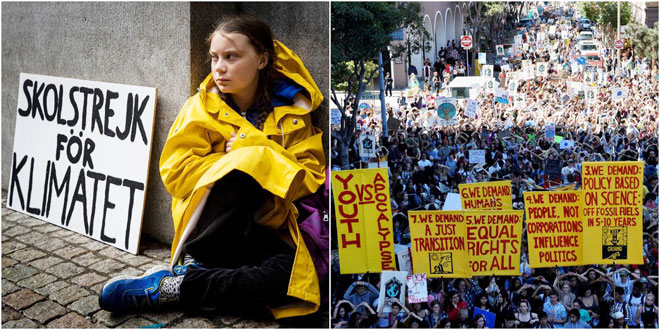 | Greta Thunberg ngồi trước toà nhà Thuỵ Điển và những cuộc biểu tình chống biến đổi khí hậu do cô bé phát động diễn ra trên khắp thế giới. ảnh: Getty/Reuters. |