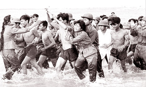 Bức ảnh “Trao trả tù binh nơi bến sông Thạch Hãn, Quảng Trị 1973” của nhiếp ảnh gia Chu Chí Thành.
