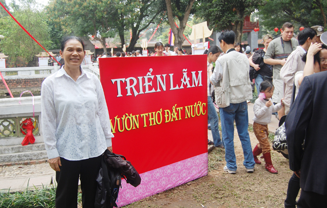 | Nhà thơ Lê Thị Mây trong Ngày thơ Việt Nam năm 2011 tại Văn Miếu - Hà Nội. |