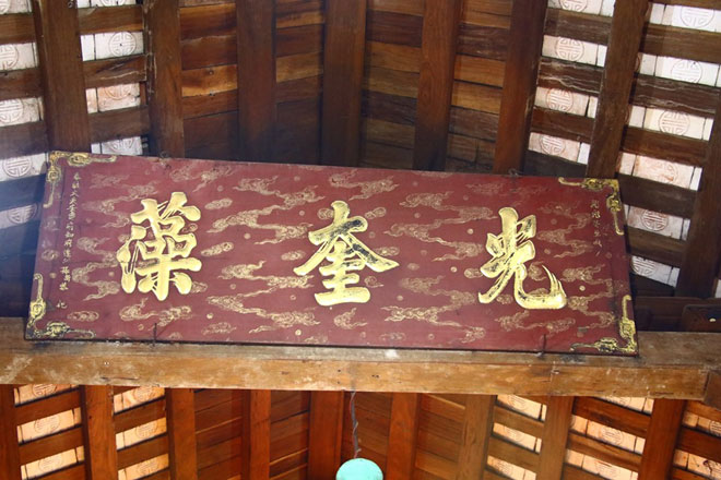 Bức hoành phi có 3 chữ “Quang khuê tảo”.