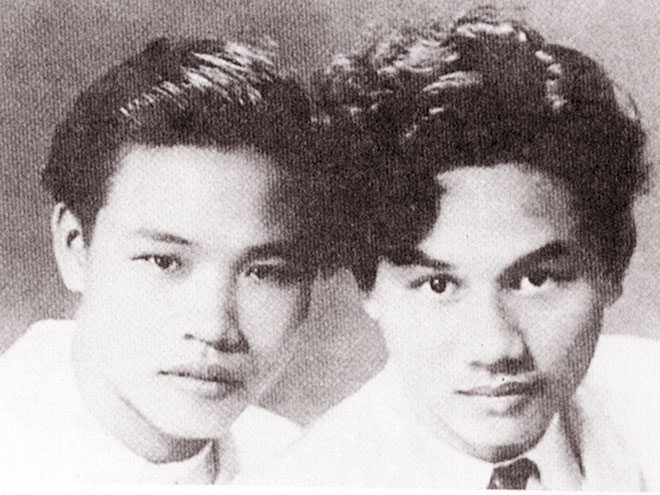 | Nhà thơ Huy Cận và nhà thơ Xuân Diệu. |