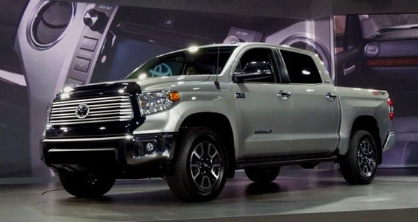 | Toyota Tundra 2016. Mẫu xe Nhật được thiết kế ở California, một phần chế tạo ở Michigan và được xây dựng ở Texas sử dụng hệ truyền động có nguồn gốc từ Alabama và North Carolina. Với phiên bản 2016, Toyota Tundra sở hữu bình nhiên liệu 38 gallon (144 lít) tiêu chuẩn. Trường hợp tệ nhất, điều này có nghĩa Tundra với động cơ V8 5.7 lít công suất 381 mã lực và dẫn động 4 bánh giúp xe tăng tốc từ 0 lên 100km/h trong 6.4 giây. |