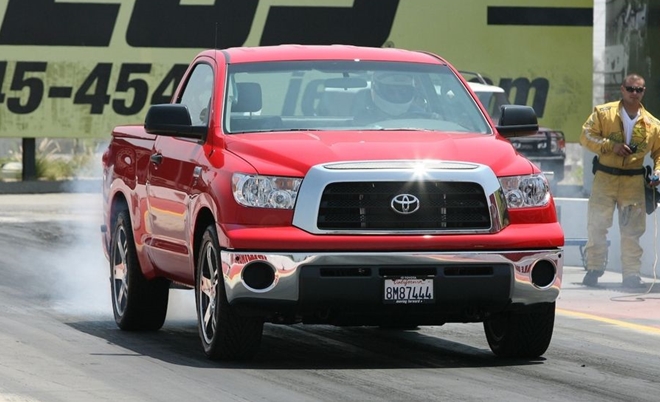| Toyota Tundra Struck TRD Supercharged bản 2009. Mẫu xe cơ bắp từ Nhật Bản có động cơ V8 tăng áp 5,7 lít cho công suất 381 mã lực cùng bộ bánh 16 inch. "Tia chớp" của xứ sở mặt trời mọc có thể tăng tốc từ 0 lên 100 km/h trong có 4,7 giây. |
