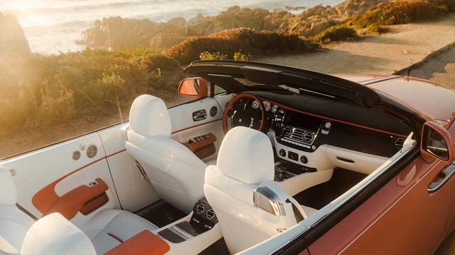 Tiếp đó mẫu Dawn phiên bản Black Badge với nước sơn màu cam Coral Solid trông chiếc xe giống như chiếc kẹo di động. Nếu màu sắc không đủ hấp dẫn với mọi người, thì chiếc xe này có tới 7 lớp sơn và 9 giờ đánh bóng bằng tay. Bên trong xe là nội thất 2 tông màu trắng Artic White và đỏ Sunset.