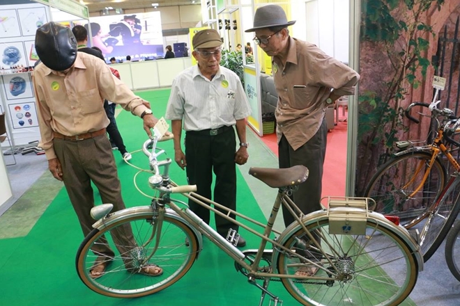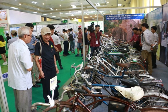 | Trong triển lãm thiết bị và sản phẩm thể thao tại Hà Nội, gian trưng bày của CLB xe đạp cổ Hà Nội chiếm một góc khiêm tốn nhưng lại thu hút rất nhiều sự chú ý. |