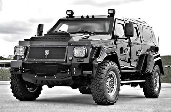 | Knight XV có thân xe và bộ lốp có thể chống lại các cuộc tấn công vũ trang bằng súng chống tăng. |
