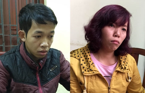 | Đối tượng Nguyễn Văn Thành và Trần Thị Thắng tại cơ quan Công an. |