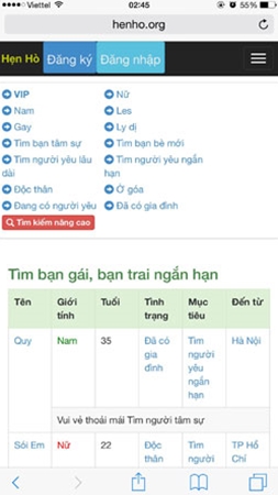 | Trang web “henho.org”, nơi Nguyễn Văn Thành săn tìm nạn nhân tại chuyên mục “Tìm người yêu ngắn hạn” để trộm cắp tài sản. |