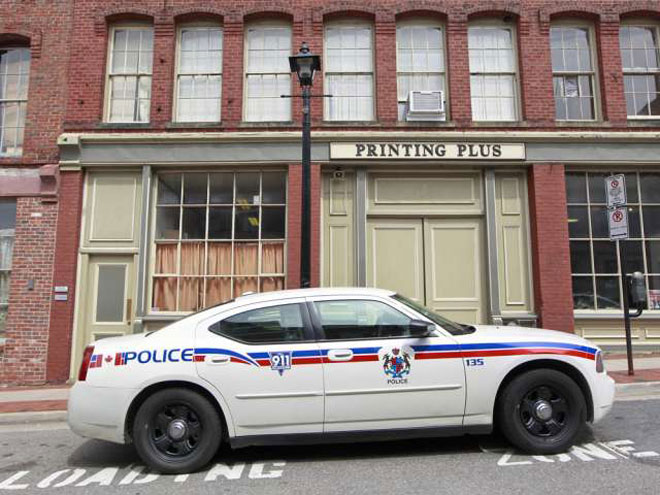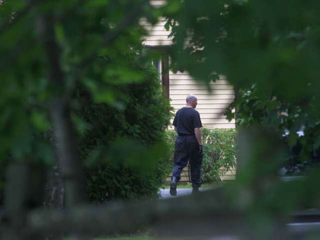 | Cảnh sát lục soát nhà riêng của Dennis Oland ở Rothesay, tỉnh New Brunswick, ngày 14-7-2011. |