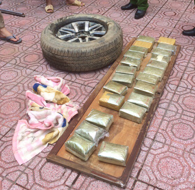 | Số ma tuý "khủng" giấu trong lốp xe dự phòng. |