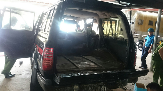 | Chiếc Land Cruiser chứa ma tuý bị bỏ lại giữa đường. |