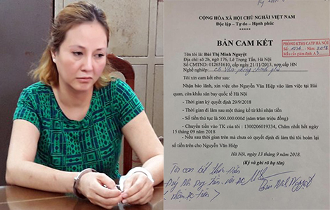 Cầm tờ cam kết trong tay, cả 2 người phụ nữ đều phấn khởi đã gặp được mối “chạy trường” là người rất đàng hoàng, không nặng nề vấn đề tiền nong. Cũng vì tin tưởng vào tờ giấy cam kết do Thủy viết nên sau đó, chị Hồng đã chuyển vào tài khoản của Thủy 450 triệu đồng.