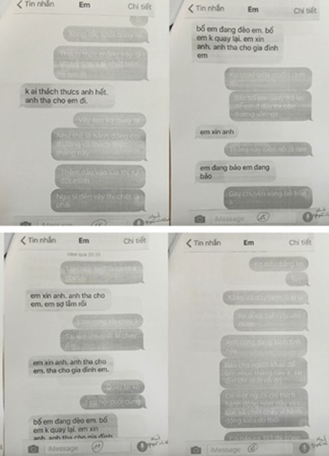 | Tin nhắn Nguyễn Văn Khánh đe dọa sẽ “giết cả nhà” bạn gái. |