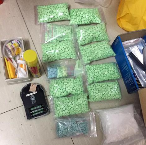 Khám xét khẩn cấp nơi ở của các đối tượng, công an đã thu giữ 15.723 viên ma túy tổng hợp, 9 túi nylon chứa hỗn hợp bột Ketamin và MDMA cùng nhiều loại tang vật khác có liên quan đến hành vi phạm tội.