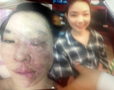 | Gương mặt của bị hại Hương trước và sau khi bị tạt axit. |