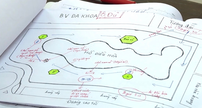 | Ban chuyên án dựng lại sơ đồ hiện trường vụ án. |