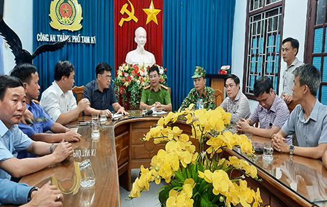| Công an TP Tam Kỳ báo cáo việc bắt giữ đối tượng Triệu Quân Sự tại cuộc họp tối 18-6 với các đơn vị chức năng. |
