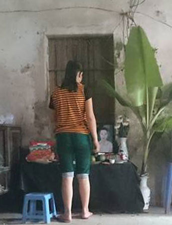| Cháu Chinh cứ bần thần bên ban thờ của người em sinh đôi. |