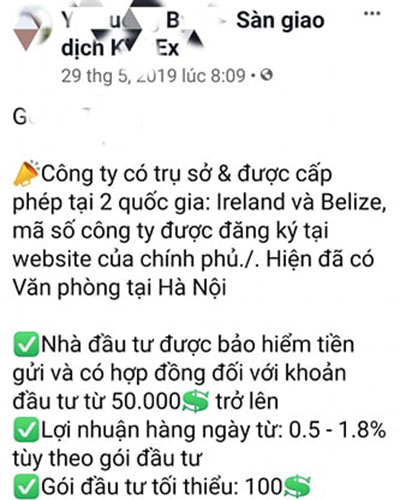 Theo một điều tra viên Phòng Cảnh sát hình sự Công an TP Hà Nội, có thể nhận thấy trò lừa đảo của người nước ngoài qua hình thức đầu tư bằng USD hay tiền tiện tử đã xuất hiện nhiều năm nay tại Hà Nội và nhiều địa phương. Thủ đoạn của các đối tượng này là lập các website hoành tráng, bắt mắt rồi huy động nhà đầu tư với các gói hấp dẫn (từ 200-1.000%/năm). Ban đầu, các đối tượng cũng "trả lãi" khá sòng phẳng, đúng với cam kết.