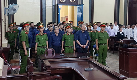 | Các bị cáo Phạm Công Danh và Trầm Bê tại tòa. |