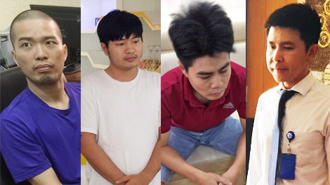 | Từ trái qua: Các đối tượng Nguyễn Minh Đạt, Trần Đông ca, Lê hữu Long và Nguyễn Minh Quang. |