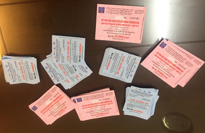 Ngoài các tang vật và hóa đơn thanh toán cước phí đường bộ trên tuyến cao tốc trên, các đối tượng trong ổ nhóm còn giao nộp cho cơ quan an ninh một số lượng lớn hóa đơn thanh toán cước phí đường bộ của các tuyến đường có đặt các trạm thu phí.