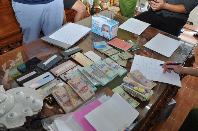 Vào thời điểm phá án, cơ quan công an đã đồng loạt bắt giữ 6 đối tượng, thu giữ 7 chiếc điện thoại di động, 1 bộ máy tính và 200 triệu đồng.