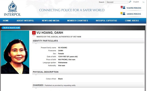 | Lệnh truy nã quốc tế Oanh “Hà”. |