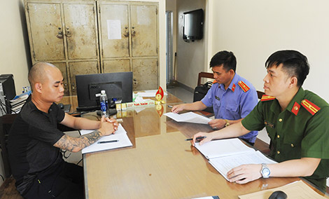 | Cơ quan Công an lấy lời khai của Nông Văn Tú. |
