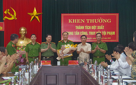 | Chủ tịch UBND tỉnh Thái Nguyên Vũ Hồng Bắc thưởng "nóng" 40 triệu đồng cho hai đơn vị chủ công điều tra khám phá vụ án. |