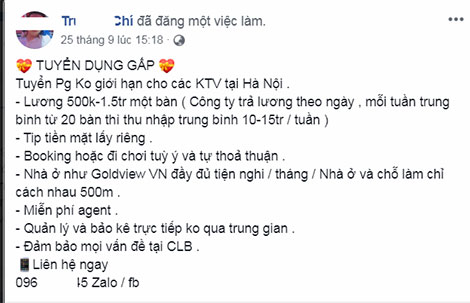 | Tú bà thường đăng tuyển PG để thiết lập đường dây mại dâm. |