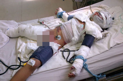 Sau khoảng 20 phút nói chuyện yêu cầu vợ cũ đưa tiền để chăm lo cho con nhưng bị chị này từ chối nên cuộc nói chuyện trở thành trận kịch chiến cãi vã. Bực tức với người vợ cũ đã khiến anh Cường quẫn trí ôm chặt đứa con nhỏ, tưới xăng và châm lửa đốt. Lửa bùng lên khiến anh Cường bị bỏng nặng phải đưa lên Bệnh viện Chợ Rẫy, TP HCM cấp cứu. Riêng cháu bé bị bỏng đến 85% ở các cấp độ 2 và 3 và bị sốc khí khiến cho đường hô hấp bị tổn thương nặng nên phải được chăm sóc đặc biệt ở Bệnh viện Nhi đồng 1…