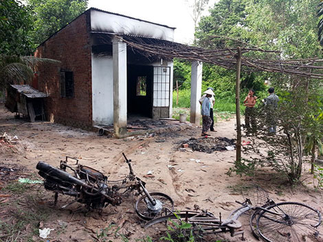 | Hiện trường vụ tự thiêu ở huyện Tân Biên, tỉnh Tây Ninh. |