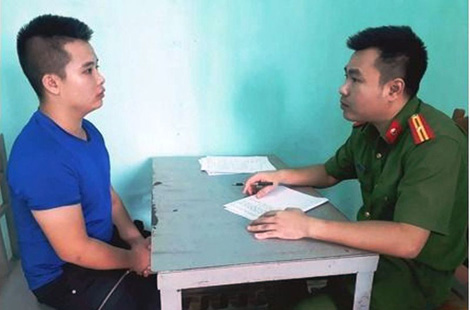 | Cháu H. khai báo tại Công an tỉnh Thanh Hoá trước sự trợ giúp của cán bộ trung tâm trợ giúp pháp lý. |