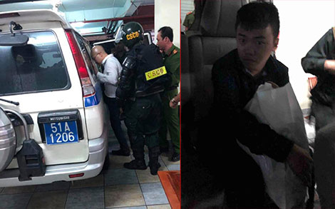 Nguyễn Thái Luyện lên xe về trụ sở Công an; Nguyễn Thái Lĩnh bị bắt giữ.
