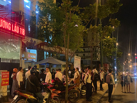 Nửa đêm nhưng phóng viên và người dân hiếu kỳ vẫn túc trực chờ thông tin từ vụ bắt giữ.