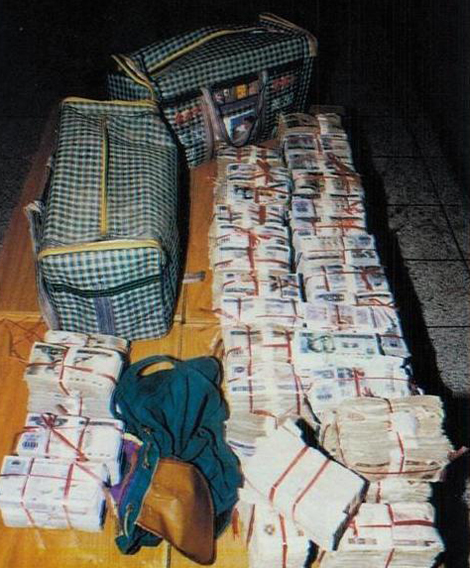 | Số tiền cảnh sát thu hồi được từ bọn cướp. |