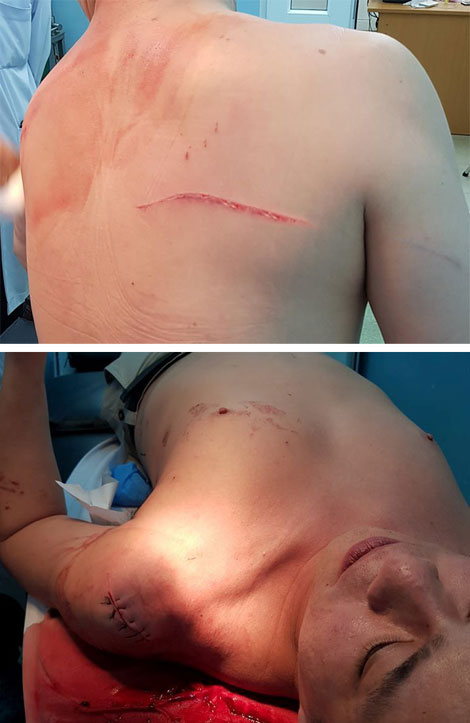 | Thương tích của ông Thái sau khi bị truy sát. |
