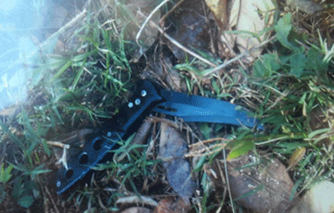 Chiếc áo khoác và con dao thu ở hiện trường.