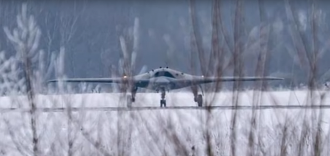 | Okhotnik-B của Nga lăn bánh trên đường băng. Ảnh: ITN |