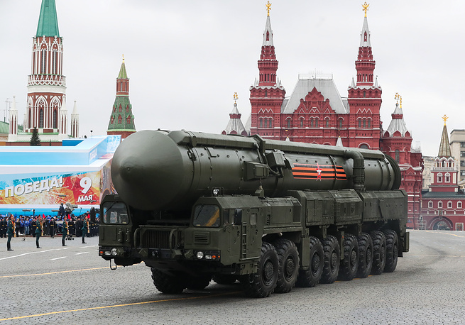 | Trong ảnh là đoàn xe tên lửa đạn đạo xuyên lục địa RS-24 Yars. RS-24 Yars hiện là tên lửa hạt nhân hiện đại nhất của Nga và là ác mộng cho các hệ thống đánh chặn của bất kì nước nào, với sức công phá mạnh, quỹ đạo bay linh hoạt. |