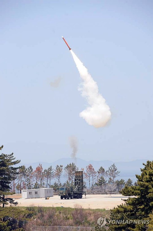 | Hệ thống tên lửa đánh chặn Cheolmae của Hàn Quốc. Ảnh: Yonhap |