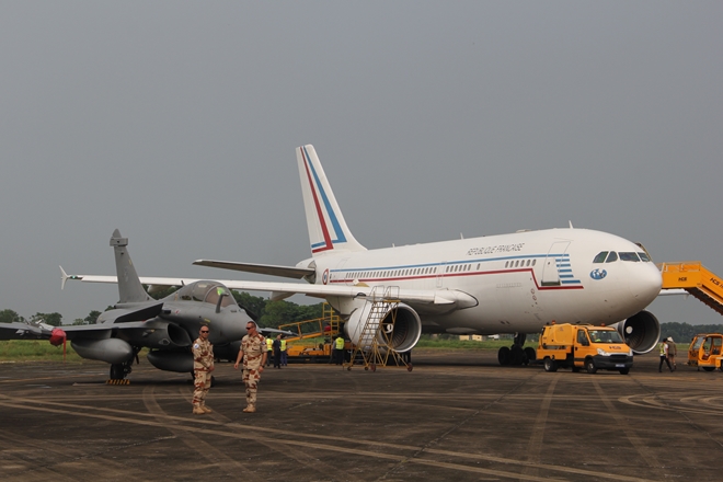 | Chiến đấu cơ Rafale dũng mãnh nhất của Pháp trên sân bay quốc tế Nội Bài. Ảnh: ĐSQ Pháp tại Việt Nam |